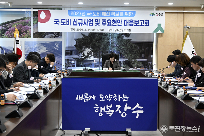 장수군은 24일 군청 2층 회의실에서 ‘2027년 국도비 예산 확보 및 주요 현안 대응보고회’를 개최했다.