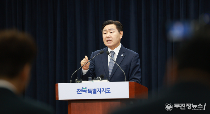 김관영 전북특별자치도지사는 25일 도청 브리핑룸에서 기자회견을 갖고 '미래 해양모빌리티를 선도하는 K-스마트조선 핵심기지, 전북'을 비전으로 하는 「전북 스마트 조선산업 육성 계획」을 밝혔다. 4대 전략·13개 핵심 추진과제를 통해 군산조선소를 단순 선박 건조 거점에서 벗어나 AI·친환경·MRO가 융합된 복합 스마트 산업 생태계로 도약시키겠다는 청사진이다.