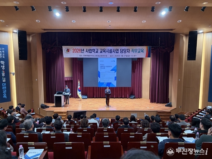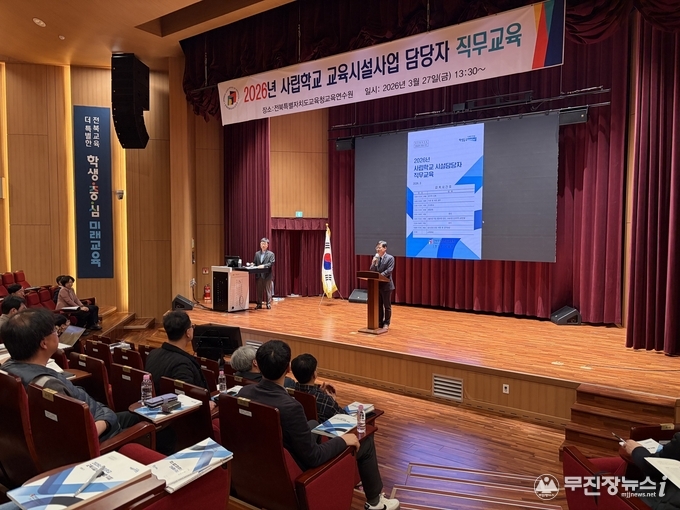 전북특별자치도교육청은 27일 교육연수원에서 사립학교 행정실장과 교육지원청 사립학교 담당자 등을 대상으로 사립학교 시설업무 전문성 향상을 위한 직무교육을 실시했다.
