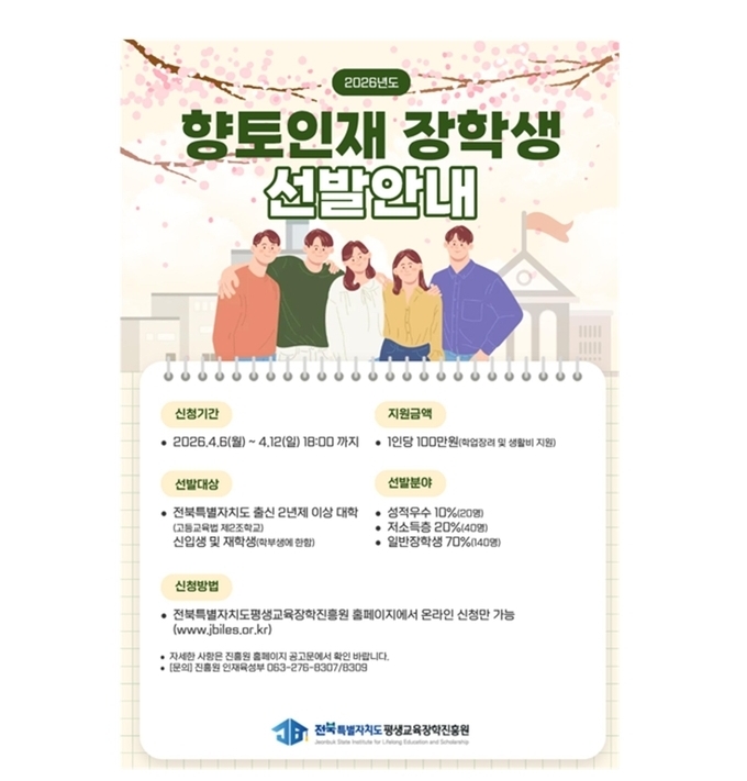 ‘2026년도 전북특별자치도 향토인재 장학생’ 선발에 나선다.
