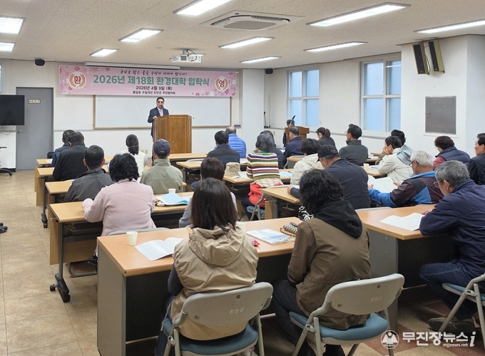 제18회 용담호 환경대학 입학식이 9일 진안 군민자치센터 강당에서 수강생 30여 명이 참석한 가운데 개최됐다.