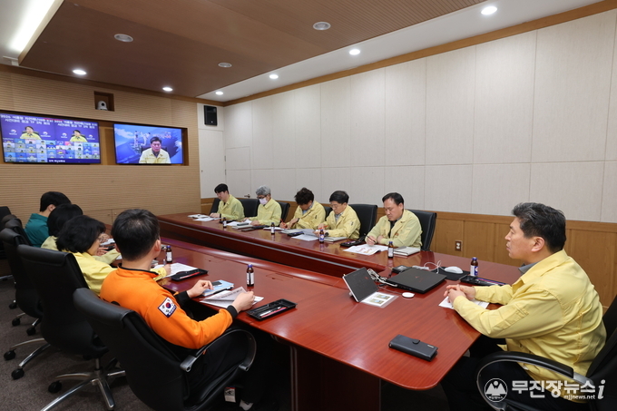 무주군이 여름철 집중호우·태풍 등 자연 재난에 선제적으로 대응하기 위해 14일 군청 대회의실에서 재난관리 관련 부서, 경찰서와 소방서 관계자 등 10여 명이 참석한 가운데 관계기관 회의를 개최했다.