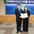 전북특별자치도교육청은 21일 창조나래 시청각실에서 ‘제4기 전북학생의회 개원식’을 개최했다. 이날 개원식은 새로 꾸려진 제4기 전북학생의회의 힘찬 출발을 축하하는 자리로, 학생의원 50명을 비롯해 가족 인솔교사 등 150여 명이 참석했다. 개원식에 앞서 진행된 의장단 선거에서는 투표를 통해 의장으로는 이강준(전라고), 부의장으로는 문해빈(이리여고), 황성원(고창고)이 선출됐다. 의장으로 선출된 이강준 학생은 “전북교육을 항상 응원해 주시는 교육공동체 여러분께 진심으로 감사드린다”며 “앞으로 전북의 모든 학생들을 위해 힘쓰는 전북학생의장이 되겠다”고 말했다. 본식은 식전 축하공연, 학생의장 개원사, 축사, 당선증 및 배지 수여식 등으로 이어졌다. 특히 제4기 전북학생의원 전원이 핸드페인팅 퍼포먼스에 참여하며, 학생이 주체적으로 참여하는 학교문화 실현에 앞장설 것을 다짐했다. 지난 2023년 출범한 전북학생의회는 그동안 상담지원 활성화, 진로박람회 확대, 인권 존중 학생 서포터즈 운영 등 학생의 눈높이에 맞는 다양한 안건을 제출, 정책에 반영하는 성과를 이끌어냈다. 유정기 교육감 권한대행은 축사를 통해 “우리 학생들이 학생의회 활동을 통해 민주주의의 가치를 배우
