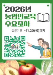 진안군은 2026년도 진안환경농업대학 및 농업인교육 과정 선정을 위해 10월 21일부터 11월 20일까지 한 달간 진안군민과 농업인의 다양한 의견을 반영하기 위한 ‘농업인 교육 수요조사’를 실시한다. 이번 수요조사는 농업인의 교육 수요와 현장의 목소리를 직접 반영하기 위한 기초자료로 활용될 예정이다. 조사 참여는 배너·현수막·SNS 등을 통해 홍보되며, QR코드(네이버폼)를 통해 누구나 간편하게 온라인으로 참여하고 의견을 제출할 수 있다. 조사 항목은 ▲진안환경농업대학 ▲새해농업인실용교육 ▲영농정착기술교육(귀농교육) 등 총 3개 과정으로 구성되어 있으며, 각 교육의 내용과 과목에 대한 농업인의 의견을 폭넓게 수렴할 계획이다. 올해 진안군은 농업인 역량 강화를 위해 다양한 교육 과정을 운영하며 높은 성과를 거뒀다. ‘새해농업인실용교육’은 상추, 고추를 비롯한 12개 과정에서 총 2,149명이 참여했으며, ‘진안환경농업대학’은 사과, 치유농업 등 2개 과정에 96명이 수료했다. 또한 수박, 포도 등 18개 품목에 대한 품목별 전문교육을 실시해 807명이 참여했다. 더불어 귀농·귀촌인을 대상으로 영농정착기술교육을 추진해 216명이 참여하는 등 실질적이고 폭넓은 교