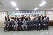 무주군은 지난 2일 예체문화관에서 시무식을 열고 2026년 업무를 시작했다. 이 자리에서 황인홍 무주군수와 무주군 공무원들은 상호 악수례를 갖추며, ‘세계 최우수 관광마을 자연특별시 무주, 세계 태권도 성지 무주’가 누구나 오고 싶고 살고 싶은 고장이 될 수 있도록 최선을 다하자는 뜻을 모았다. 황인홍 무주군수는 신년사를 통해 ‘심사역천(深思力踐_깊이 생각하고 전력을 다해 실천한다)’의 자세로 ‘무주형 기본사회’를 향해 나아가겠다는 뜻을 밝혀 눈길을 끌었다. 이를 위해 지역 실정에 맞는 기준을 마련하고 군민의 기본권 보장을 더욱 확대하겠다고 언급한 황 군수는 “생애주기별 맞춤형 정책을 확충해 포용과 상생의 공동체 모델을 만들 것”이라고 전했다. 이어 “행정이 기본을 책임지고, 그 위에서 지역공동체와 지역경제가 함께 성장하는 구조로 나아갈 것”이라며 “주요 기반인 기본소득 실행을 위한 절차 이행과 예산확보에 전력을 다해 기본사회로 가는 문을 활짝 열겠다”라고 덧붙였다. 또한 태권브이랜드, 생태모험공원, 향로산 산림복지단지 등 주요 관광자원을 차질 없이 조성하고, 야간관광과 생태 문화가 어우러진 체류형 콘텐츠를 확장하는 등 관광 인프라 구축을 통한 경쟁력 향상에