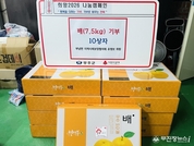 무주군 부남면 사회보장협의체 유영보 위원이 직접 수확한 배 10박스(1박스 7.5kg)를 지난 22일, 부남면 행정복지센터에 기탁해 훈훈함을 주고 있다. 유영보 위원은 "한 해 동안 땀 흘려 거둔 결실을 지역 내 어르신들과 함께 나누고 싶은 마음에서 배를 가지고 나왔다“라며 ”수분 보충, 면역력 강화에 도움이 되는 배가 어르신들 건강 증진에 도움이 되길 바란다“라고 전했다. 이어 ”작으나마 곳곳에 도움이 될 수 있도록 지속적인 봉사와 기부활동을 이어 나가고 싶다"라는 뜻을 밝혔다. 유영보 위원은 4년째 직접 수확한 사과와 배를 기탁하며 이웃들에게 사랑을 전하고 있다.