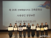 전북특별자치도는 18일 도청 공연장에서 ‘전북건축, 올림픽 유치와 함께 세계를 디자인하다’를 주제로 제26회 전북특별자치도 건축문화제를 성대하게 개최하고, 건축문화상 시상식을 진행했다고 밝혔다. 올해 행사에는 노홍석 행정부지사를 비롯해 전북건축문화진흥연합회 관계자, 건축 전문가 등 300여 명이 참석해 자리를 빛냈다. 이번 건축문화상은 지난 7월부터 9월까지 공모된 작품을 대상으로 건축학계 교수와 건축사회 전문가들의 심사를 거쳐 총 46점의 우수작이 선정됐다. 공공부문 대상에는 ‘전북대학교 국제컨벤션센터’, 일반부문 전체대상에는 ‘호옴(ho:om)’, 학생부문 대상에는 전주대학교 박인호 학생의 ‘DATA MATRIX’가 각각 선정됐다. 또한 올해 처음 도입된 숏폼 영상 공모전에는 총 22점이 접수돼 이 중 5점이 최종 수상작으로 선정됐다. 수상작들은 11월 18일부터 23일까지 도청 로비에서 전시될 예정으로 , 도민 누구나 자유롭게 전시를 관람할 수 있다. 전시 기간에는 건축문화상 전시 외에도 어린이 집그리기 대회, 건축올림피아드, VR 건설안전체험, 열린 건축상담 등 다양한 도민참여 프로그램이 함께 마련되어 건축을 가까이 체험할 수 있다. 특히 올해는 전북