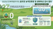 전북특별자치도 보건환경연구원이 도내 골프장을 대상으로 실시한 농약 잔류량 검사에서 모든 골프장이 안전사용기준을 준수하고 있는 것으로 나타났다고 11일 밝혔다. 연구원은 매년 도내 골프장을 대상으로 27종 농약의 잔류 여부를 정밀 분석하고 있다. 2025년 도내 27개 골프장을 검사한 결과, 고독성 농약과 잔디 사용 금지 농약은 단 한 건도 검출되지 않았다. 일부 농약이 미량 검출되기는 했으나, 모두 농약관리법상 허용된 저독성 농약 7종에 해당해 안전 기준 내에서 관리되고 있는 것으로 나타났다. 또한 골프장 유출수가 주변 환경에 미치는 영향을 확인하기 위해 물벼룩을 활용한 급성 생태독성 평가를 병행한 결과, 모든 골프장에서 독성이 나타나지 않았다. 이는 골프장 운영이 인근 수생태계에 미치는 영향이 매우 낮다는 것을 의미한다. 도는 최근 이용객이 급증하고 있는 파크골프장에 대해서도 잔류농약 실태조사를 선제적으로 추진할 계획이다. 생활체육시설 전반에 대한 환경 안전성을 점검해 도민들이 보다 안심하고 시설을 이용할 수 있도록 관리체계를 강화한다는 방침이다. 전경식 전북자치도 보건환경연구원장은 “과학적인 검사를 통해 도내 골프장과 주변 환경의 안전성을 지속적으로 확인