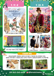 영화와 산림문화가 만나는 특별한 시간, “숲속으로 영화소풍”이 오는 19일부터 21일까지 무주 향로산 자연휴양림에서 개최된다. 산림청과 무주군이 주최하고 한국산림복지진흥원과 (재)무주산골문화재단이 주관하는 이번 행사는 지역 주민과 숲을 찾는 관광객을 대상으로 특별한 문화 향유의 기회를 제공한다는 취지에서 마련되는 것으로, 자연에서 즐길 수 있는 주제의 야외영화 2편(9. 19. (금) “어네스트와 셀레스틴: 멜로디 소동” / 20. (토) “윙키”)과 온 가족이 참여할 수 있는 산림문화 체험, 신나는 숲속 공연 등을 즐길 수 있다. 산림문화 체험으로는 △그물망 놀이터&해먹, △열매 액자와 친환경 가방, △도마 만들기, △걱정 인형 열쇠고리, △천연 해충 기피제, △휴대전화 거치대 만들기, △산림 문학 100선(산림청이 선정한 숲, 나무, 산, 들, 꽃, 풀 등 자연을 주제로 한 문학작품 100권), △달리는 책 놀이터(한국출판문화산업진흥원이 운영하는 전자책, 듣는 책 등), △숲 해설사와 함께하는 모노레일 체험 등이 마련된다. 19일 숲속 공연에서는 ‘뮤즈그레인’과 함께 “자연의 소리로 노래 만들기”를 해 볼 수 있으며 20일에는 ‘로로’의 “소리에