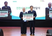 진안군 읍·면 주민자치위원장들이 5일, 제16회 평생학습&주민자치 어울마당 행사를 기념해 따뜻한 마음을 모아 진안사랑장학재단(이사장 전춘성)에 장학금 1백만원을 기부하였다. 전달식에 참여한 최경자 진안군 주민자치협의회장은 “미래 희망인 우리 지역 청소년들이 꿈을 키우고 학업에 전진할 수 있도록 작은 힘이나마 보태고자 위원장님들과 뜻을 모았다”며, “오늘 전달한 장학금이 학생들의 성장 밑거름이 되어, 진안에 희망을 불어넣는 큰 동력이 되기를 바란다”고 밝혔다. 에 전춘성 이사장은 “주민자치위원장님들의 깊은 뜻에 감사드리며, 기부 해주신 장학금은 학생들이 경제적인 걱정 없이 오직 학업에만 전념할 수 있도록 투명하고 효율적으로 운영하겠다”라고 화답했다 한편 진안사랑장학재단은 장학금 지급뿐 아니라, 중학생 해외 역사탐방, 생활과학교실 등 다양한 장학사업을 통해 진안군 관내 학생들의 교육 환경 개선을 위해 앞장서고 있다.