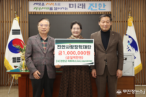부귀면에 거주중인 양찬욱·정영희 부부가 18일 진안사랑장학재단(이사장 전춘성)에 장학금 300만원을 전달하였다. 전달식에 참여한 양찬욱 씨는 “진안사랑장학재단과 인연을 맺고 지역인재 육성에 동참할 수 있어 기쁘다”라며, “진안의 학생들이 자부심을 가지고 학업에 정진하여 지역을 빛낼 동량으로 성장하기를 진심으로 기원한다”라고 기부 소감을 밝혔다. 이에 진안사랑장학재단 관계자는 “변함없이 따뜻한 마음을 꾸준히 전해주시는 양찬욱·정영희 부부에게 깊은 감사를 드린다”라며, “기부해주신 장학금은 우리 군의 미래를 짊어질 인재들이 꿈을 펼칠 수 있는 소중한 밑거름으로 사용하겠다.”라고 화답했다. 한편 진안사랑장학재단은 장학금 지급뿐 아니라, 중학생 해외 역사탐방, 생활과학교실 등 다양한 장학사업을 통해 진안군 관내 학생들의 교육 환경 개선을 위해 앞장서고 있다.