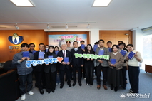 무주반딧불신협이 지난 27일 무주읍행정복지센터(읍장 정진화)에 지역의 어려운 이웃들을 위한 생활 물품(구스 이불 18세트, 화장지 20세트 / 2백50만 원 상당)을 전달하며 훈훈함을 전했다. 지대신 무주반딧불신협 이사장은 “추워지는 날씨 때문에 힘든 이웃들이 따뜻한 지낼 수 있도록 도움이 될 만한 물품들로 준비했다”라며 “지역사회와 함께하는 금융기관으로서 앞으로도 책임과 역할을 다하기 위해 최선을 다할 것”이라고 밝혔다. 무주반딧불신협은 2016년부터 무주읍행정복지센터를 비롯한 지역사회보장협의체, 마을 경로당 등 지역 기관·단체에 후원을 지속하며 나눔 활동에 앞장서왔다. 특히 연중 수시로 복지 물품을 지원하는 등 지역사회에 귀감이 되고 있다. //