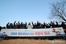 무주군민들은 지난 1일 무주읍 향로산 제1전망대에서 개최된 ‘2026 병오년 해맞이’ 행사를 통해 서로의 건강과 지역의 번영을 기원했다. 무주읍발전협의회(회장 김성용)가 주관한 이날 행사에는 황인홍 무주군수와 오광석 무주군의회 의장을 비롯한 관내 기관·사회단체를 비롯한 주민 등 3백여 명이 참석해 의미를 더했다. 참석자들은 새해 덕담을 나누며 ‘만세삼창’ 외쳐 좋은 기운을 돋웠다. 황인홍 무주군수는 “기운찬 붉은 말의 해가 밝았다”라며 “올해는 당찬 도전과 알찬 성취로 군민 여러분이 빛나는 만큼 자연특별시 무주도 함께 빛나기를 바란다”라고 전했다.