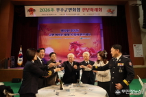 2026년 무주군민화합 신년하례회가 6일, 무주예체문화관 대공연장에서 개최됐다. 무주군자원봉사센터(이사장 이강우)가 주최로 열린 이날 행사에는 황인홍 무주군수를 비롯 오광석 무주군의회 의장과 윤정훈 도의원, 지역 기관·단체 관계자와 군민 등 200여 명이 참석해 새해 인사를 나누며 지역 화합을 다지는 시간을 가졌다. 행사를 주최한 이강우 센터장은 “붉은 말의 해, 열정을 가지고 군민 화합과 공동체 회복을 위한 역할을 지속적으로 수행할 것 ”이라고 다짐했다. 이 자리에서 황인홍 무주군수는 “다함께 행복한 무주형 기본사회를 만들고 마을공동체 회복의 원년으로 삼을 것”이라며 “군민 모두가 체감할 수 있는 따뜻한 행정과 공동체 중심의 정책을 통해 더 살기 좋은 무주를 만들어 나가겠다”고 말했다.