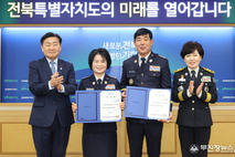전북특별자치도는 6일 도청에서 제13대 전북특별자치도 의용소방대 남·여 연합회장을 선출하고 임명장을 수여했다. 이번 선출로 전북특별자치도 의용소방대 남성연합회장에는 완주 민국열 대장이, 여성연합회장에는 정읍 김성순 대장이 각각 선출됐다. 연합회장은 전북특별자치도 의용소방대를 대표해 지역 의용소방대 간 협력과 연대를 강화하고 생활 속 안전문화 확산을 선도하는 역할을 수행하는 자리로, 전북 지역의 안전을 책임지는 핵심적인 책무를 맡게된다. 민국열 남성회장은 2016년 입대하여 2023년 의용소방대장, 2024년 완주 연합회장으로 활동하며 지역 내 화재 등 크고작은 재난대응과 봉사활동에 적극 참여해왔다. 특히 2024년 7월 기록적인 폭우로 피해를 입은 주민들이 하루빨리 일상으로 복귀할 수 있도록 생업을 뒤로한 채 복구활동에 전념하는 등 지역안전에 크게 기여한 바 있다. 또한, 김성순 여성회장은 2004년 입대 이후 20여 년 동안 화재와 풍수해 등 각종 재난 현장 최일선에서 시민의 생명과 재산을 지켜왔으며, 독거노인 돌봄과 취약계층 반찬나눔 등 이웃을 위한 따뜻한 봉사활동을 지속해 왔다. 이러한 공로를 인정받아 2025년 11월‘정읍시민의 장’중‘애향봉사장’을