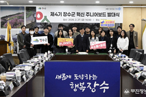 장수군은 지난 27일 군청 회의실에서 ‘제4기 혁신 주니어보드’ 발대식을 개최하고 젊은 공직자 중심의 참여형 혁신 활동에 본격 돌입했다고 밝혔다. 혁신 주니어보드는 5년차 이하 공직자들이 조직 운영 전반에 대해 자유롭게 의견을 제시하고, 실질적인 개선 과제를 발굴하는 내부 혁신기구로, 세대 간 소통을 확대하고 유연한 조직문화를 조성하기 위해 운영되고 있다. 2022년 10월 첫 출범 이후 3기까지 운영되며 방화동 워케이션 활성화 방안 논의 등 다양한 정책 아이디어를 제안해 온 주니어보드는, 올해 4기를 맞아 보다 체계적이고 실행력 있는 활동을 이어간다. 이번 제4기에는 자유 신청을 통해 19명의 회원이 선발됐으며 △조직문화 개선 과제 발굴 △일하는 방식 혁신 논의 △AI 역량 강화 교육 △우수사례 벤치마킹 등 다양한 활동을 추진한다. 특히 제안된 의견이 단순 건의에 머무르지 않고 실제 정책과 제도 개선으로 연결될 수 있도록 실행 점검 체계를 강화하고, 관련 부서와의 협업을 통해 실질적인 성과 창출에 집중한다는 방침이다. 이를 통해 장수군은 현장의 목소리가 군정 전반에 반영되는 선순환 구조를 구축할 계획이다. 최훈식 군수는 “조직의 경쟁력은 구성원의 창의적인