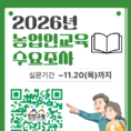 진안군은 2026년도 진안환경농업대학 및 농업인교육 과정 선정을 위해 10월 21일부터 11월 20일까지 한 달간 진안군민과 농업인의 다양한 의견을 반영하기 위한 ‘농업인 교육 수요조사’를 실시한다. 이번 수요조사는 농업인의 교육 수요와 현장의 목소리를 직접 반영하기 위한 기초자료로 활용될 예정이다. 조사 참여는 배너·현수막·SNS 등을 통해 홍보되며, QR코드(네이버폼)를 통해 누구나 간편하게 온라인으로 참여하고 의견을 제출할 수 있다. 조사 항목은 ▲진안환경농업대학 ▲새해농업인실용교육 ▲영농정착기술교육(귀농교육) 등 총 3개 과정으로 구성되어 있으며, 각 교육의 내용과 과목에 대한 농업인의 의견을 폭넓게 수렴할 계획이다. 올해 진안군은 농업인 역량 강화를 위해 다양한 교육 과정을 운영하며 높은 성과를 거뒀다. ‘새해농업인실용교육’은 상추, 고추를 비롯한 12개 과정에서 총 2,149명이 참여했으며, ‘진안환경농업대학’은 사과, 치유농업 등 2개 과정에 96명이 수료했다. 또한 수박, 포도 등 18개 품목에 대한 품목별 전문교육을 실시해 807명이 참여했다. 더불어 귀농·귀촌인을 대상으로 영농정착기술교육을 추진해 216명이 참여하는 등 실질적이고 폭넓은 교