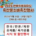 전북특별자치도가 추석 명절을 맞아 도민들에게 안전하고 품질 좋은 축산물을 저렴하게 제공하기 위해 ‘2025년 축산물 소비촉진행사’를 연다. 도는 이번 행사를 9월 26일부터 28일까지 사흘간 도청 서편광장에서 개최한다고 23일 밝혔다. 이번 행사는 고물가와 소비 위축으로 어려움을 겪고 있는 축산농가를 돕고, 전북산 축산물의 우수성과 브랜드 인지도를 높이기 위해 마련됐다. 한우·한돈·산란계·낙농·오리협회 등 생산자 단체와 NH참예우조합공동사업법인, 전북한우협동조합, 농협목우촌, 임실치즈농협 등 18개 기관·업체가 참여한다. * 참여기관․업체 : 축산물품질평가원 전북지원, 생산자협회 5(한우, 한돈, 낙농, 산란계, 오리) 참여브랜드 : 참예우, 총체보리한우, 정읍한우, 장수한우, 단풍미인한우, 고산미소, 물통골한우, 마이돈포크, 어성초포크, 목우촌, 참프레, 임실치즈, 계란 등 행사 기간 동안 도민들은 한우, 돼지고기, 계란 등 주요 축산물을 100g당 가격으로 최대 30% 저렴하게 구입할 수 있고, 가공품은 최대 50%까지 할인된다. 주요 품목의 할인 판매가는 ▲한우 등심(1+등급) 100g당 10,000원(20% 할인) ▲한우 정육(1+등급) 100g당 3