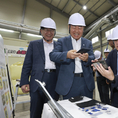 김성환 환경부장관이 5일 전북특별자치도를 방문한 가운데 태양광 폐패널 재활용업체인 전주 석청코리아를 찾아 김관영 도지사와 재활용시설을 둘러보고 있다.