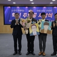전북특별자치도는 2025년 4분기 '자랑스러운 우리의 혁신 주인공'에 금융사회적경제과 임정우 주무관과 동물위생시험소 명근식 주무관을 선정했다고 29일 밝혔다. 이번 분기는 묵묵히 소임을 다하는 부서의 보석 '초지일관 주인공'과 1~3분기에 아쉽게 선정되지 못한 후보자 중 뽑는 '도전 끝판왕 주인공' 두 부문으로 나눠 진행됐다. '초지일관 주인공'에 뽑힌 임정우 주무관은 전국 최초 전북핀테크육성지구 지정을 이끌며 전북만의 금융 특화 사업을 추진할 기반을 마련했다. 범도민 금융교육 확대, 벤처창업 지원, 빅데이터 센터 활성화 등을 통해 지역 금융 생태계 조성에도 기여했다. 명근식 주무관은 1분기에 아깝게 선정이 무산됐던 '이팔청춘 주인공(나이와 상관없이 어떤 일이든 솔선수범하는 직원)' 부문 후보로, 도 축산업 발전의 선봉장이다. 휴일과 밤낮을 가리지 않고 신속하게 질병을 진단하고 헌신적으로 농가를 관리해 전국 2위 규모인 전북 축산업 성장에 핵심 역할을 담당했으며, 결원으로 업무가 과중한 상황에서도 수의직 공무원의 사기 진작과 화합에도 힘썼다. 노홍석 전북자치도 행정부지사는 "맡은 바 소임을 묵묵히 솔선수범하며 수행해 준 혁신 주인공들 덕분에 올해도 전북이 한
