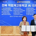 전북특별자치도교육청이 직업계고등학교 인공지능(AI) 인재양성을 위해 ㈜케이티(KT)와 손을 맞잡았다. 전북교육청과 KT는 16일 전주공업고등학교에서 ‘직업계고등학교 AI 인재양성을 위한 업무협약’을 체결했다고 밝혔다. 이날 협약식에는 윤영임 전북교육청 교육국장과 안기청 KT 전남전북법인사업단장, 도내 직업계고를 대표해 전주공업고·전주생명과학고·전주여자상업고·덕암정보고·한국치즈과학고·남원용성고·원광보건고 등 7개교 교장이 참여했다. 협약에 따라 양 기관은 AI 실무 인재 양성을 위한 AICE(AI Certificate for Everyone) 취득 지원과 교원 역량 강화에 적극 협력한다. AICE는 KT가 주관하는 국내 유일의 AI 분야 국가공인자격증이다. 특히 교육청은 AI 융합 교육 정책을 수립하고 AI 국가공인자격증 취득을 지원하며, AICE 교육과정 운영을 위한 교원 역량 강화에 힘쓴다. KT는 AI 실습 플랫폼 제공·운영 지원, 온오프라인 교육 지원, AICE 국가공인자격증 취득 교육 프로그램 제공, 교원 역량 강화 연수를 지원한다. 윤영임 교육국장은 “KT 인프라인 AICE와 AI 실습 플랫폼을 도내 직업계고 교육에 도입함으로써 전북형 AI 실무인재
